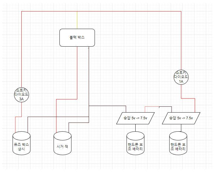 시거잭을 이용하여 트리거링을 진행하고, 보조 배터리를 이용하여 블랙 박스를 작동시키게 되었습니다.