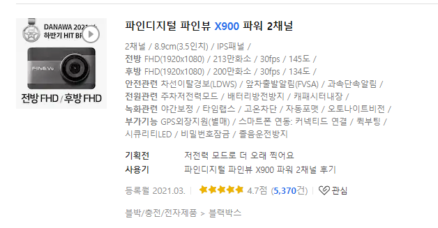 "그래, 이제는 한국 블랙 박스를 사용해야겠다"라는 결심을 하고, 다나와에서 제품 검색을 시작하였습니다.