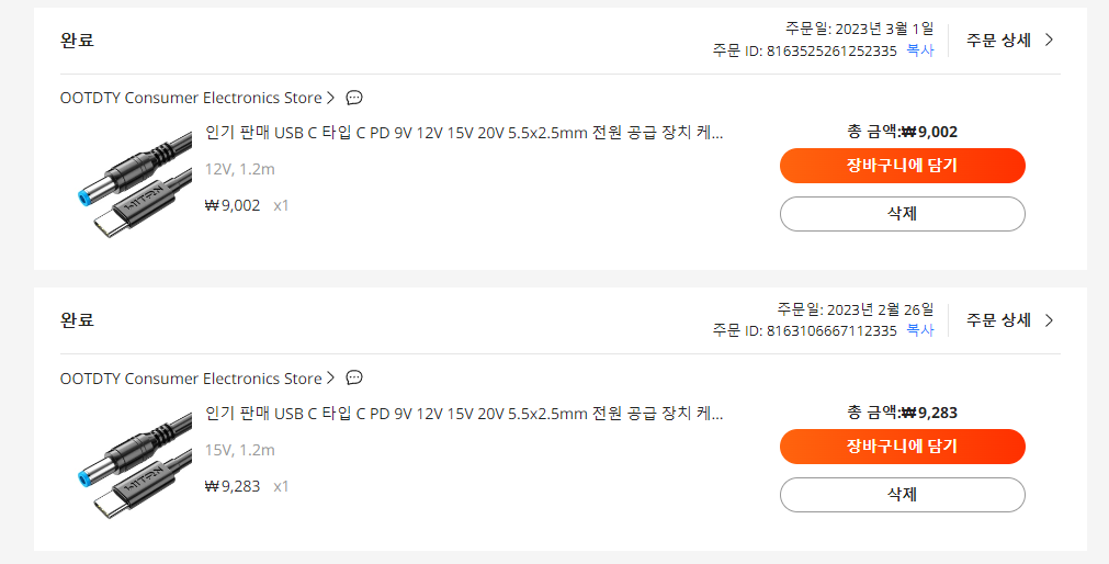 Y형 전원 케이블을 사용하면 해결될 것이라는 정보를 검색하게 되었고, 이를 구매하기로 결정하였습니다.