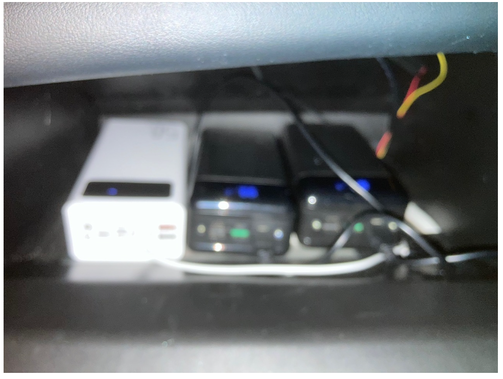 이제는 주행 중에는 차량의 전기를 사용하고, 차량의 전기 공급이 중단되면 핸드폰 보조 배터리를 사용하게 되었습니다.