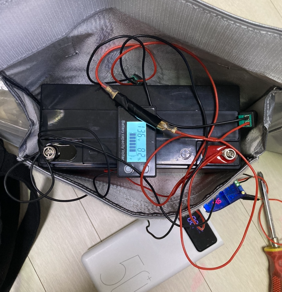 패스스루 배터리는 가격이 상당히 비싸기 때문에, 저렴한 기존 배터리를 차량 전기로 충전하였습니다.