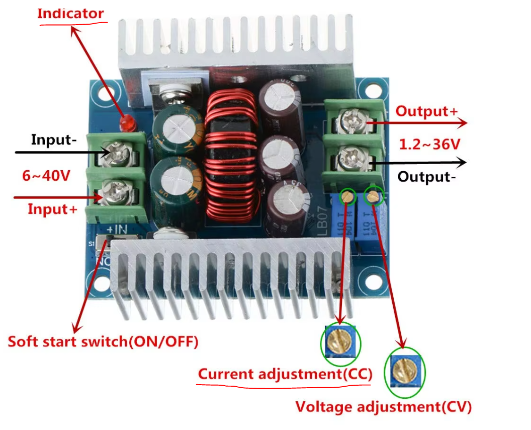 - 발열 문제: 심한 발열로 보조 배터리가 멈춘다면 컨버터의 CC값을 내려야 (시계 반대 방향)합니다